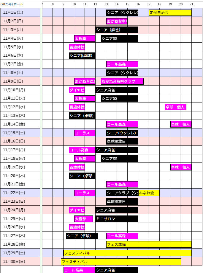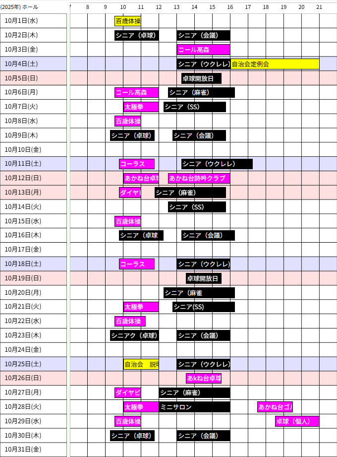 - 詳細は、「あかね台自治会諸規定集/会館管理運営要領」を確認ください。