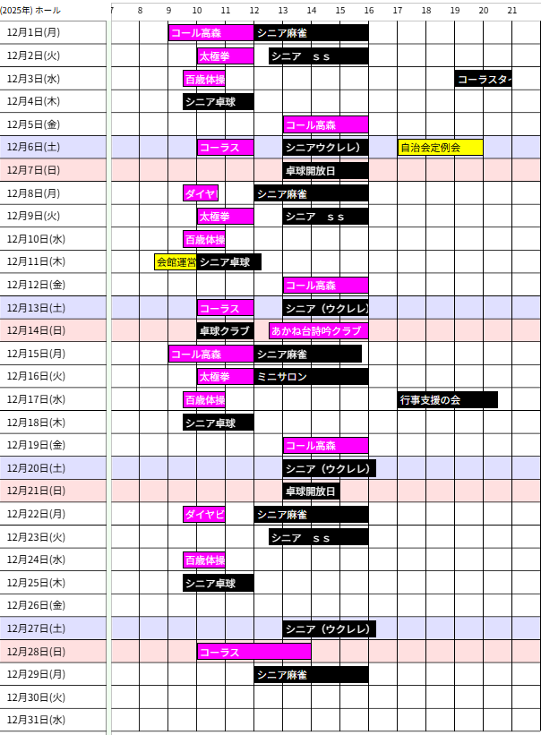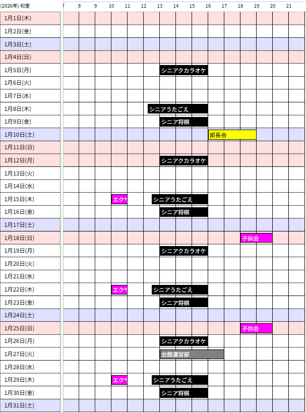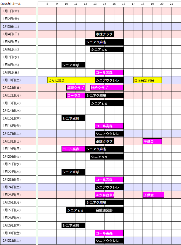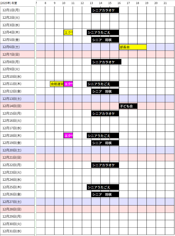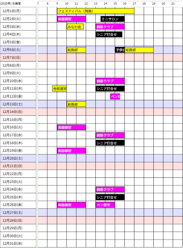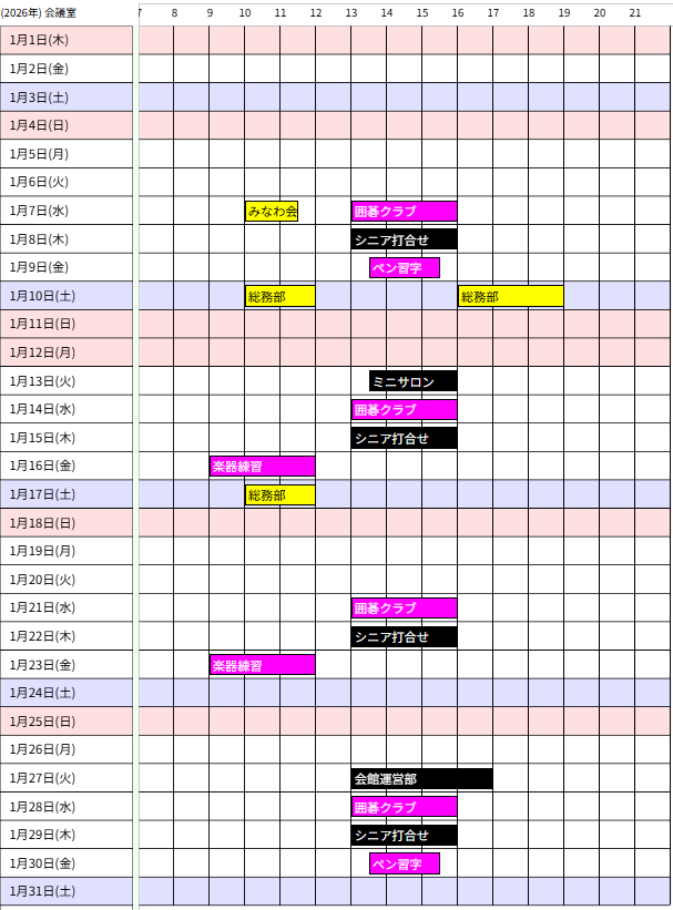- 会館カレンダーは1週間に一度、毎週木曜日までの受付分を反映し更新します。